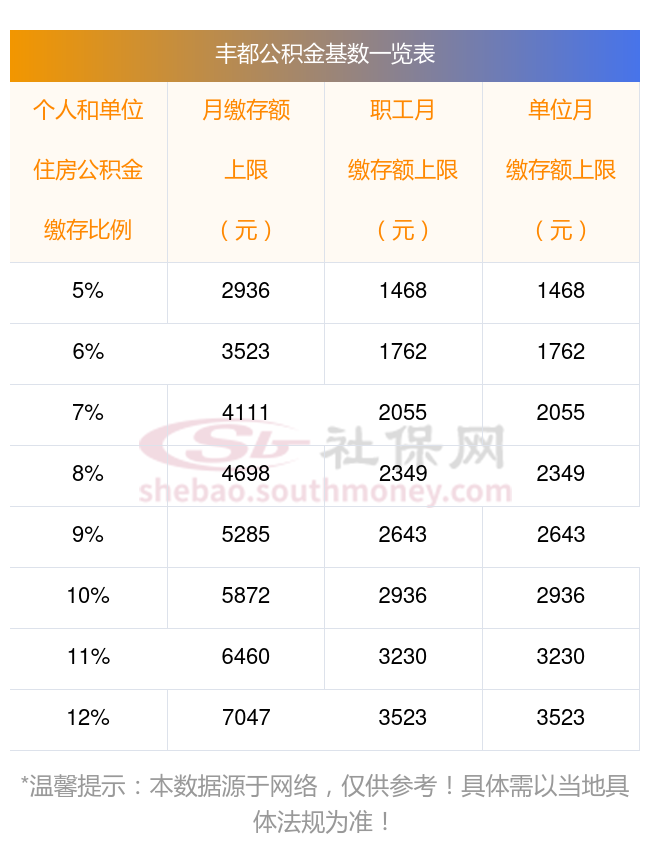 丰都住房公积金缴存比例严格执行以下法定,即缴存比例最低不得低于5%(单位和个人缴存比例均不得低于5%),最高不得高于12%(单位和个人缴存比例均不得高于12%),单位可在5%-12%区间内自主确定住房公积金缴存比例,缴存比例一律取整数。