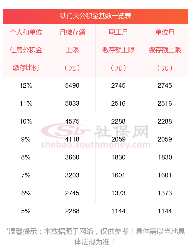 住房公积金缴存基数不超过职工工作所在地有关部门公布的上年度职工月平均工资的3倍,不低于新疆省铁门关市有关部门法定的最低工资标准。