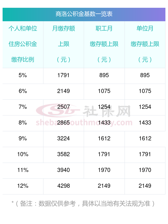 二、商洛住房公积金缴存基数上下限
