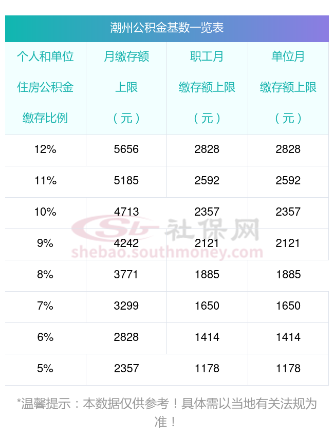 (三)住房公积金月缴存额下限:2024年度潮州住房公积金月缴存额下限为162元(单位和职工合计)。