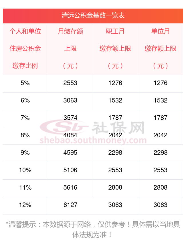 清远住房公积金缴存基数以职工本人上一年度月平均工资计算。