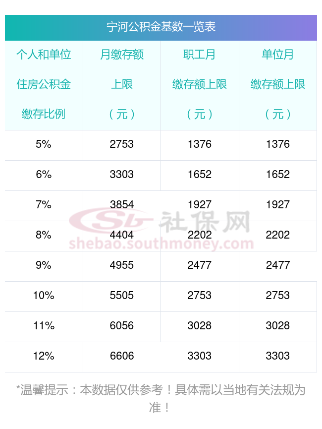 宁河住房公积金缴存基数以职工本人上一年度月平均工资计算。