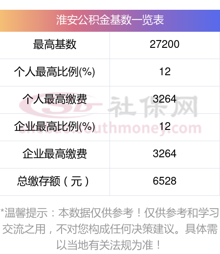 2024年淮安公积金月缴存额公式: