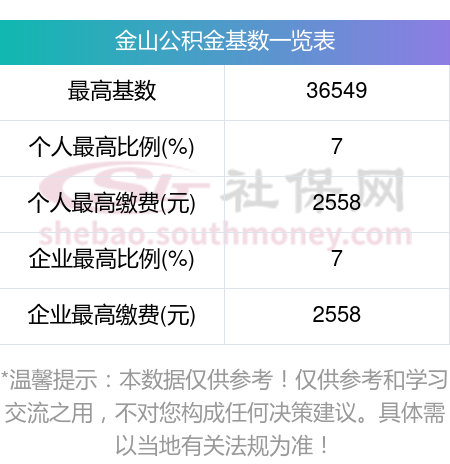 2023年度金山住房公积金缴存基数范围为2590元-36549元,所以目前上限为36549元。2024年度金山住房公积金缴存基数范围暂未公布。