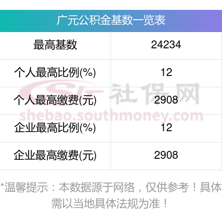 2024-2025年广元市公积金缴费标准如下: