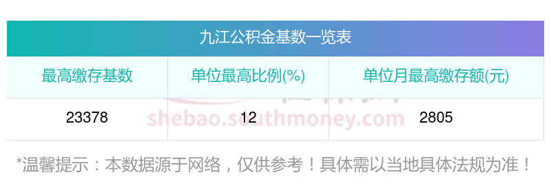 (二)住房公积金月缴存额上限:2024年度九江住房公积金月缴存额上限为5610元(单位和职工合计)。