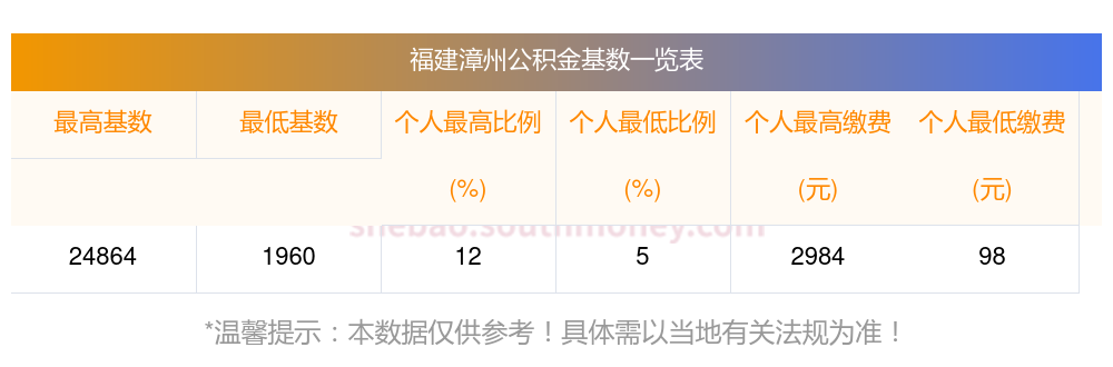 三、福建漳州月缴存额下限