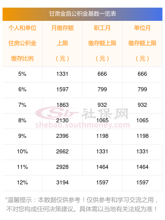 甘肃金昌住房公积金缴存基数上下限