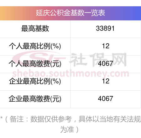 按照延庆市相关部门公布的2022年延庆市城镇非私营单位就业人员年平均工资计算,本年度缴存基数上限为33891元;根据北京有关部门关于调整我省最低工资标准的法定,本年度缴存基数下限为2420元。
