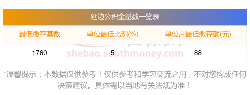 (3)最低月缴存额为延边为 176元(其中:单位88 元,个人88元)。
