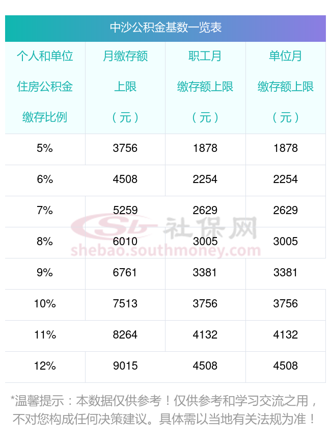 二、 中沙住房公积金缴存基数上下限