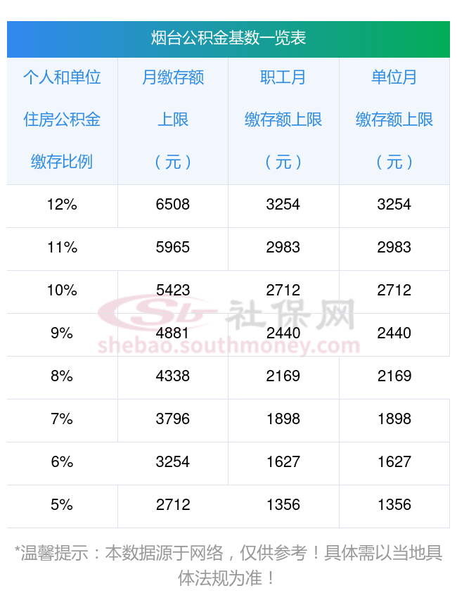 (2)烟台最高月缴存额为 6508 元,各缴存比例对应的月缴存额上限,按照《2023 年度住房公积金缴存比例对应月缴存额上限标准》执行。