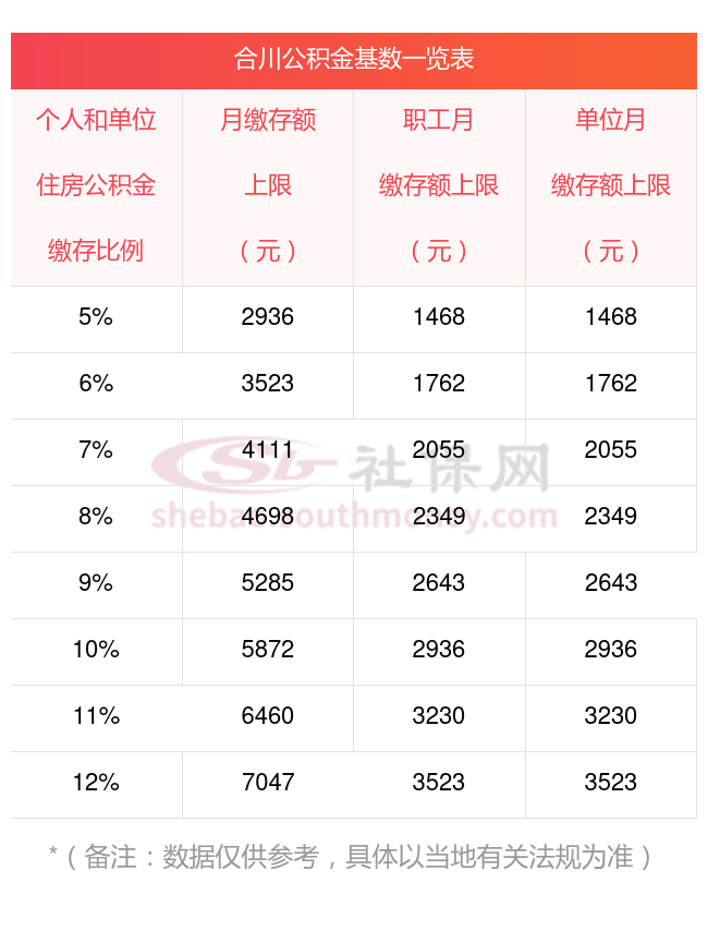 合川住房公积金缴存基数以职工本人上一年度月平均工资计算。