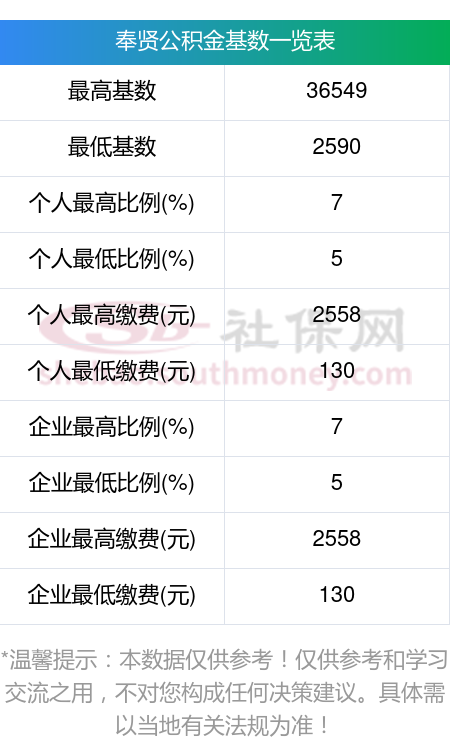 (三)住房公积金月缴存额下限:2023年度奉贤住房公积金月缴存额下限为260元(单位和职工合计)。