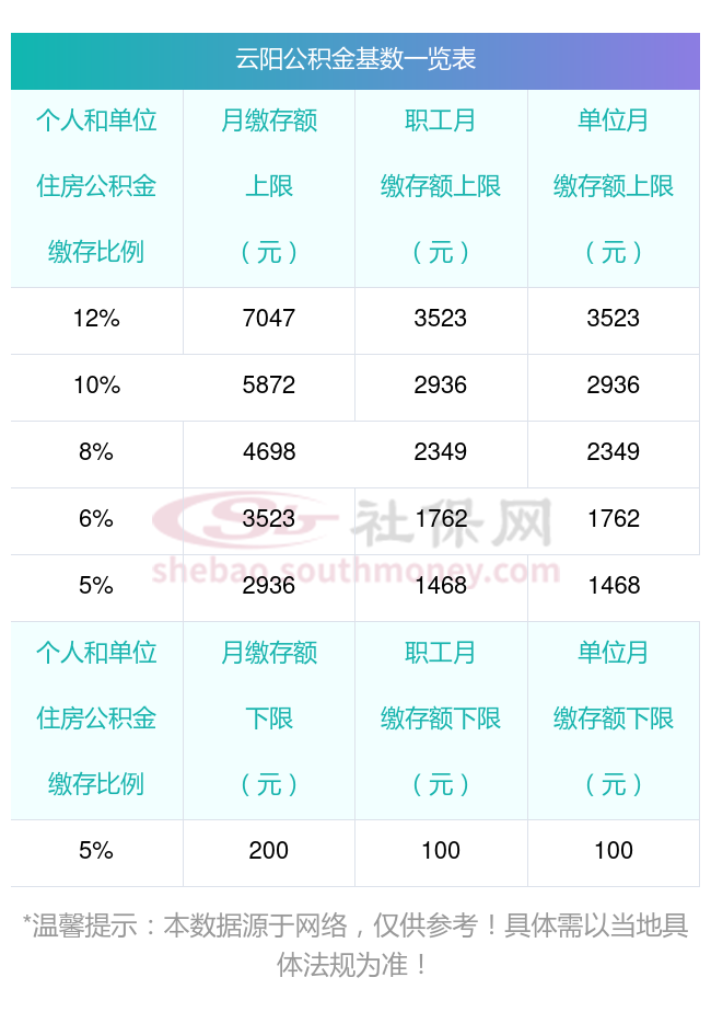公积金缴存比例是怎么定的?全国统一法定的吗?缴存比例也叫应缴公积金的系数的,缴存比例,一般指住房公积金的缴存比例,就是你应缴公积金的系数,它和本人月平均基数和应缴系数都有关系,平均工资额和系数的增加或减少,应缴公积金的数额都会相应变化。下面跟随社保网小编来了解:云阳的最新公积金缴存比例及可以选择的比例多少种。