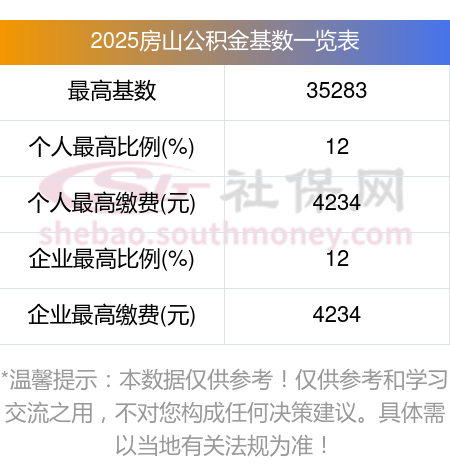 2025年北京公积金缴存基数上限下限对照表,上限比例对比缴存基数表: