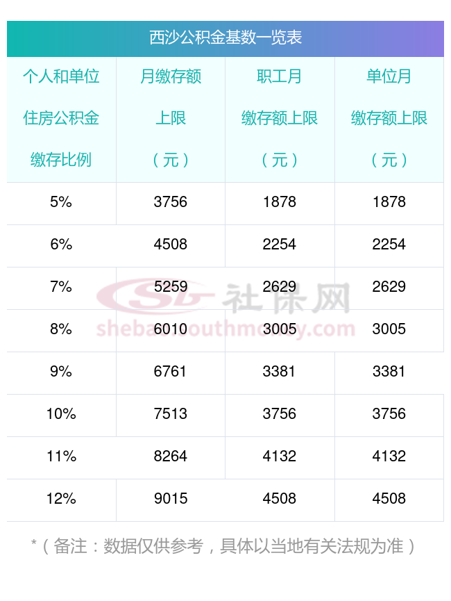 每月缴纳的住房公积金你了解多少?2025年西沙住房公积金年度住房公积金缴存基数上限为35283元。如按照12%的缴存比例,最高每月可缴存8468元,对于不同的缴存比例对于的缴纳金额是不一样的。