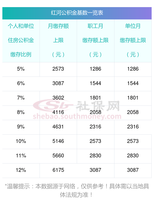二、红河住房公积金缴存基数上下限