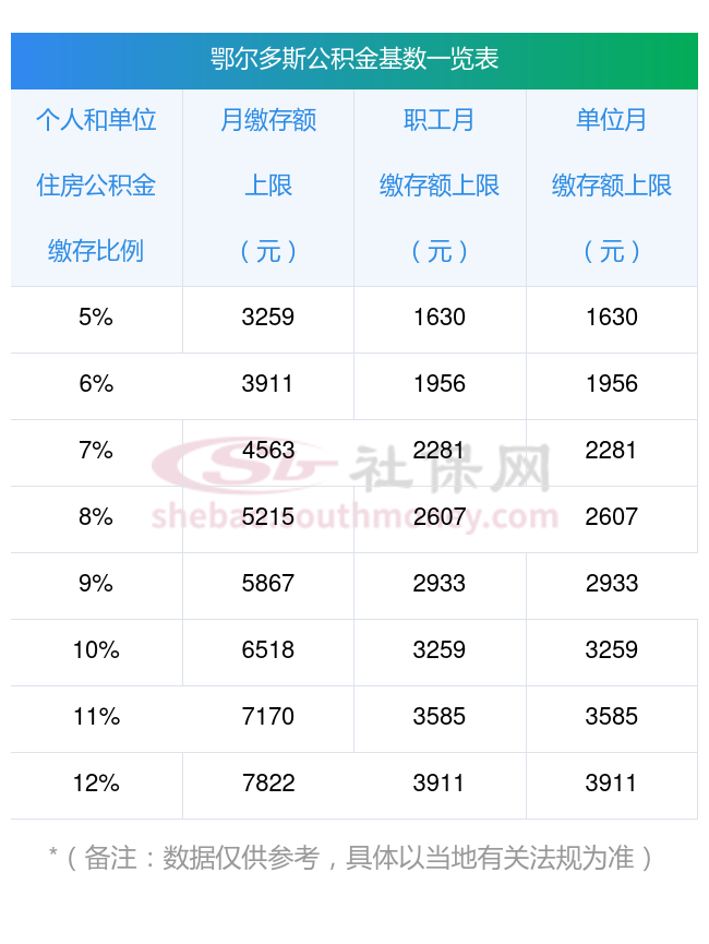 每月缴纳的住房公积金你了解多少?2025年鄂尔多斯住房公积金年度住房公积金缴存基数上限为35283元。如按照12%的缴存比例,最高每月可缴存8468元,对于不同的缴存比例对于的缴纳金额是不一样的。