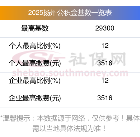 每月缴纳的住房公积金你了解多少?最新扬州2025年职工缴存的住房公积金费用最高上限35283,需要提醒的,各地的公积金的缴费基数和比例是不一样的,因此,社保一金中的公积金每年要交多少钱也是因地而异的。