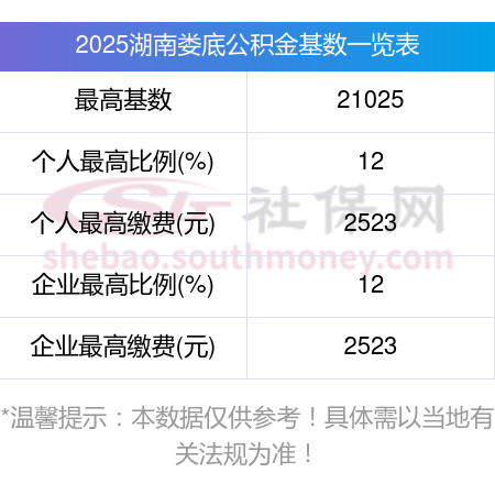 湖南娄底住房公积金的基数上限、下限、比例如下: