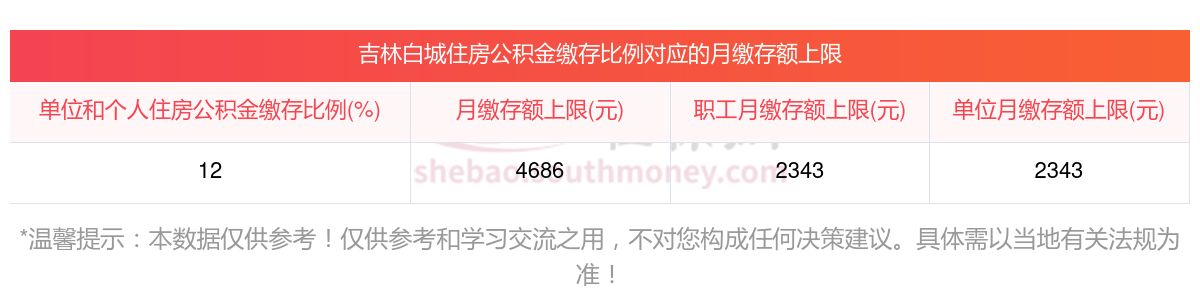 以下举例,可以从吉林白城不同比例计算得知公积金每月缴存额度的。