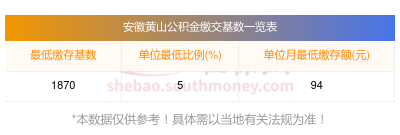 安徽黄山住房公积金月缴存额下限是多少?住房公积金缴存比例及基数范围如下: