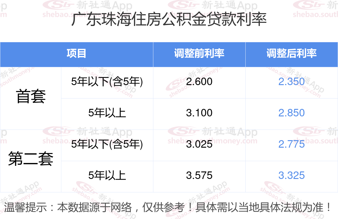 最新央行下调个人住房公积金贷款利率,首套和二套房利率分别调整为2.350%、2.850%和不低于2.775%、3.325%,自2024年5月18日起执行。多地跟进调整,具体可查询当地公积金官网。那现在广东珠海住房公积金贷款利率调整后是多少?广东珠海个人住房贷款利率最低是多少?下面是新社通APP小编整理的相关住房公积金贷款利率及计算方法的知识,快收藏好了!