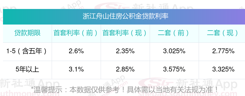 浙江舟山最新一次住房公积金贷款利率调整什么时候?在2024年517起发出通告,住房公积金个人住房贷款利率下调0.25个百分点,为购房者带来实惠。新规覆盖新申请及已放款贷款,预计可节省数万元。公积金助力中低收入家庭购房,服务体验升级,安全有保证。那想要在浙江舟山办理的购房贷款利率,现在执行的公积金贷款首套房利率是多少?二套房利率又是多少?下面是新社通APP小编整理的相关贷款知识,希望能帮助到你。