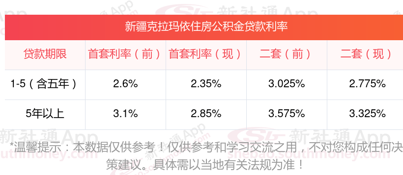 住房公积金贷款利率每年都会调整的吗?住房公积金贷款有什么优惠的?其实,公积金贷款利率是为就业职工住房专门制定的资金池,享有一定的住房贷款优惠,下调个人住房公积金贷款利率,将使更多稳定就业的职工以更低成本购房,增强职工的购房能力,刺激稳定就业的职工入市。那现在新疆克拉玛依住房公积金贷款利率调整后是多少?最新的办理的购房贷款利率可以申请到多少利率的?新疆克拉玛依个人住房贷款利率最低是多少?下面是新社通APP小编整理的相关住房公积金贷款利率及计算方法的知识,快收藏好了!