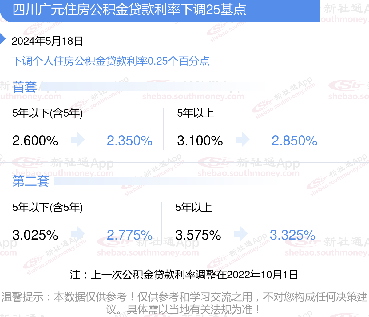 四川广元最新一次住房公积金贷款利率调整什么时候?在2024年517起发出通告,住房公积金个人住房贷款利率下调0.25个百分点,为购房者带来实惠。新规覆盖新申请及已放款贷款,预计可节省数万元。公积金助力中低收入家庭购房,服务体验升级,安全有保证。那想要在四川广元办理的购房贷款利率,现在执行的公积金贷款首套房利率是多少?二套房利率又是多少?下面是新社通APP小编整理的相关贷款知识,希望能帮助到你。