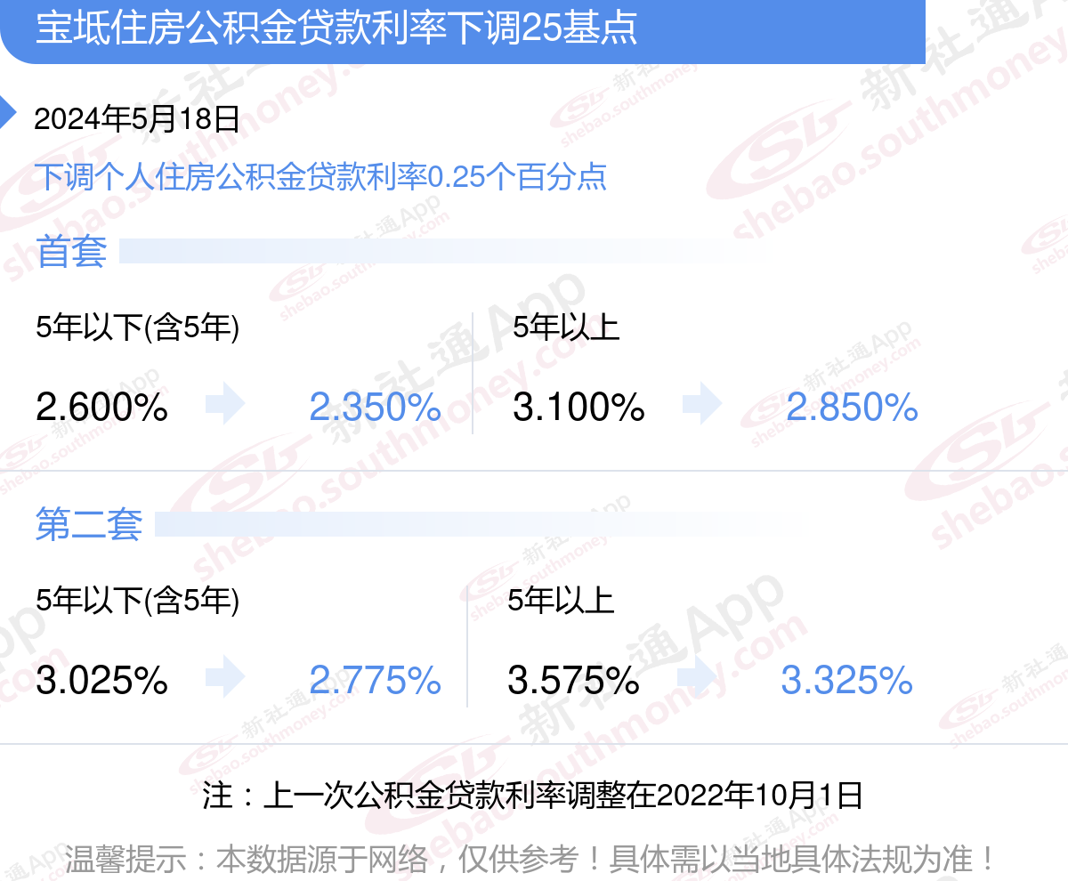 近期,住房公积金贷款利率又下调了,2024年5月18日起发放的个人住房公积金贷款,执行调整后的利率。下调首套个人住房公积金贷款利率0.25个百分点,即五年以下(含五年)首套个人住房公积金贷款利率由2.600%下调至2.350%。