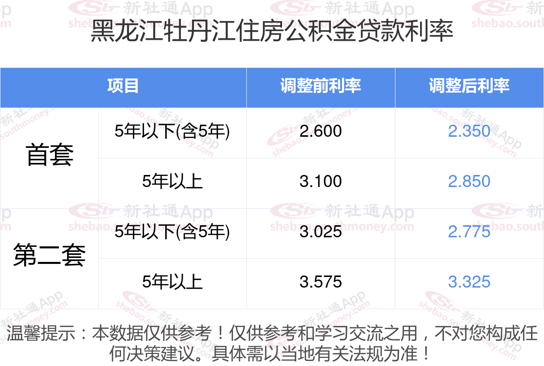 最新央行下调个人住房公积金贷款利率,首套和二套房利率分别调整为2.350%、2.850%和不低于2.775%、3.325%,自2024年5月18日起执行。多地跟进调整,具体可查询当地公积金官网。那现在黑龙江牡丹江住房公积金贷款利率调整后是多少?黑龙江牡丹江个人住房贷款利率最低是多少?下面是新社通APP小编整理的相关住房公积金贷款利率及计算方法的知识,快收藏好了!
