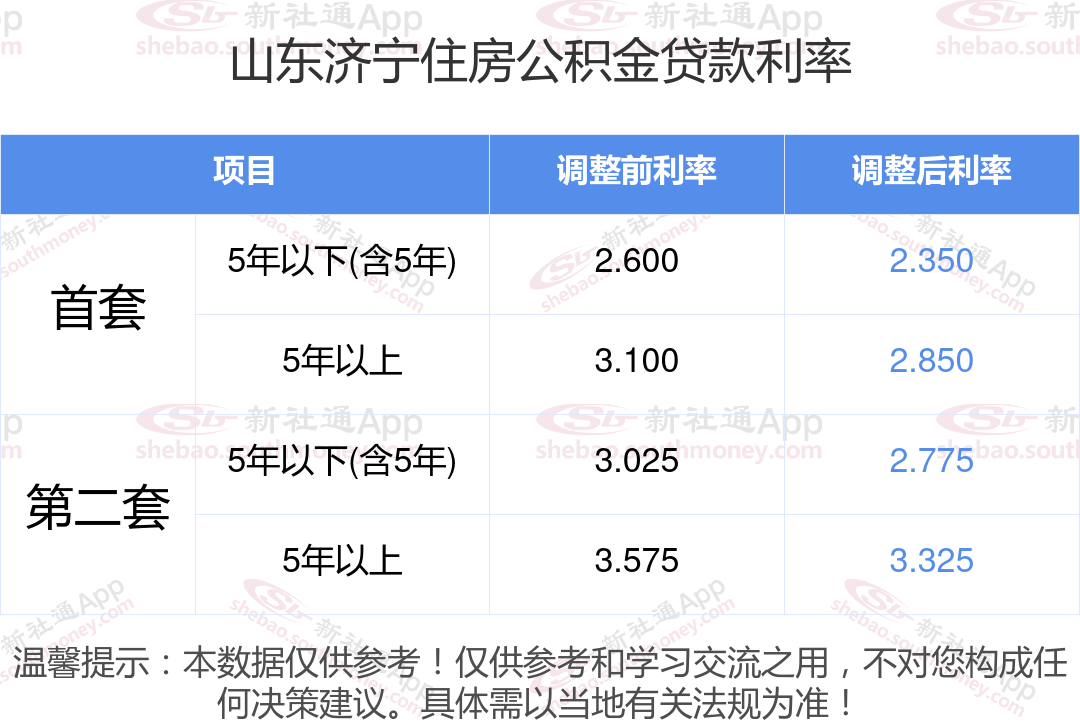 最新央行下调个人住房公积金贷款利率,首套和二套房利率分别调整为2.350%、2.850%和不低于2.775%、3.325%,自2024年5月18日起执行。多地跟进调整,具体可查询当地公积金官网。那现在山东济宁住房公积金贷款利率调整后是多少?山东济宁个人住房贷款利率最低是多少?下面是新社通APP小编整理的相关住房公积金贷款利率及计算方法的知识,快收藏好了!