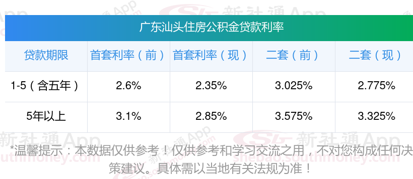 2025年广东汕头公积金贷款利率是多少?