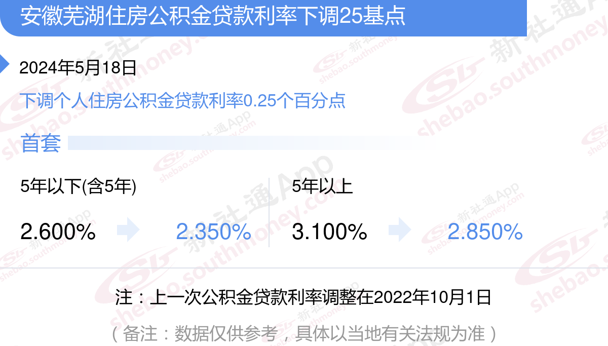 根据2024年5月17日安徽芜湖住房公积金,公布关于下调个人住房公积金贷款利率的通告,整理如下: