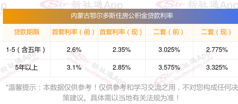 2025年内蒙古鄂尔多斯公积金贷款利率是多少?