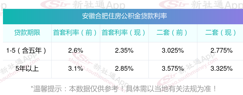 近日,中国人行宣布,自5月18日起,下调个人住房公积金贷款利率0.25个百分点,5年以下(含5年)和5年以上首套个人住房公积金贷款利率分别调整为2.350%和2.850%,5年以下(含5年)和5年以上第二套个人住房公积金贷款利率分别调整为不低于2.775%和3.325%。现在安徽合肥个人住房贷款利率最低是多少?下调的公积金贷款利率后办理可以省下多少钱的?下面是新社通APP小编整理的相关贷款知识,希望能帮助到你。