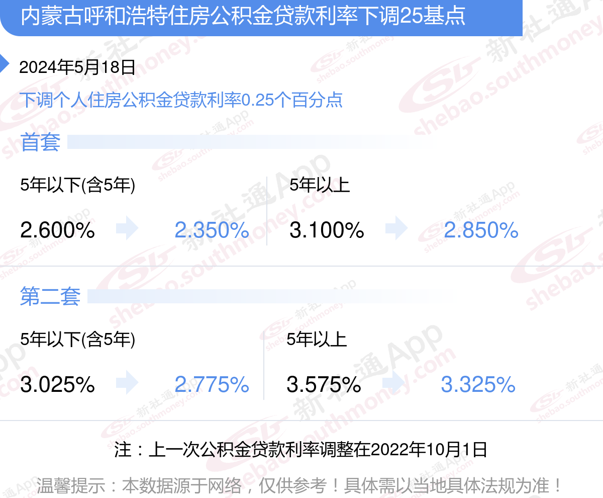 2024年最新下调个人住房公积金贷款利率,这一新规降低了住房公积金贷款的利率,减轻了使用住房公积金贷款购房者的负担。同时,也鼓励了更多购房者使用住房公积金贷款,进一步促进房地产市场的稳定发展。想着各个城市的公积金贷款利率执行标准是什么样子?内蒙古呼和浩特个人住房贷款利率最低是多少?下调的公积金贷款利率后办理可以省下多少钱的?下面是新社通APP小编整理的相关贷款知识,希望能帮助到你。