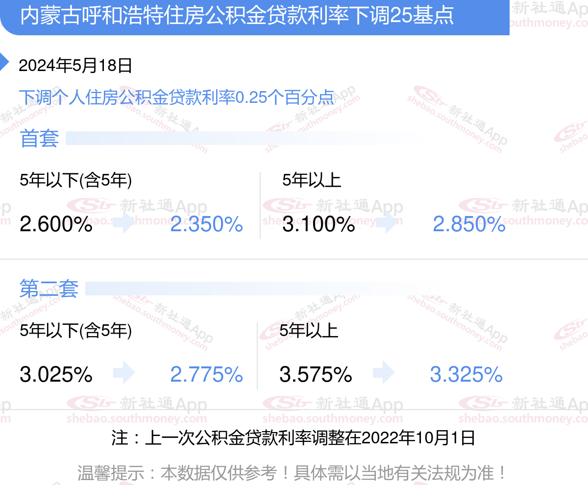 央行下调个人住房公积金贷款利率,首套和二套房利率分别调整为2.350%、2.850%和不低于2.775%、3.325%,自2024年5月18日起执行。多地跟进调整,具体可查询当地公积金官网。那现在内蒙古呼和浩特住房公积金贷款利率调整后是多少?内蒙古呼和浩特个人住房贷款利率最低是多少?下面是新社通APP小编整理的相关住房公积金贷款利率及计算方法的知识,快收藏好了!