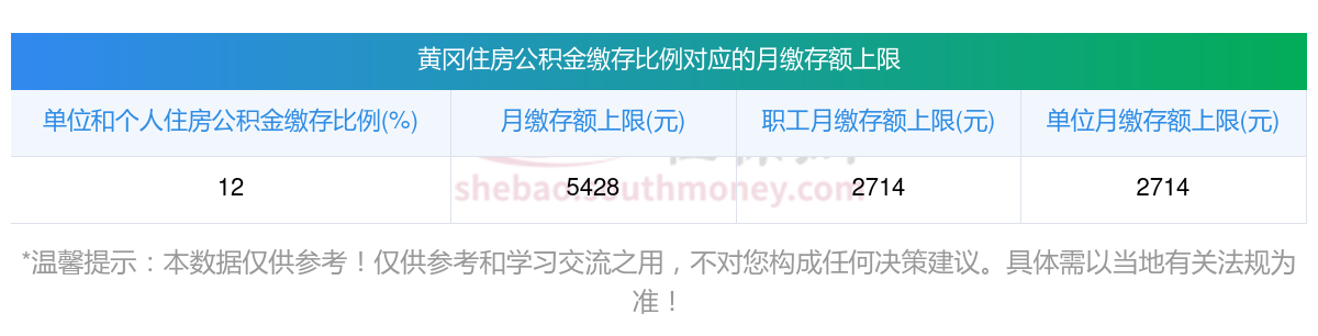 以下举例,可以从黄冈不同比例计算得知公积金每月缴存额度的。