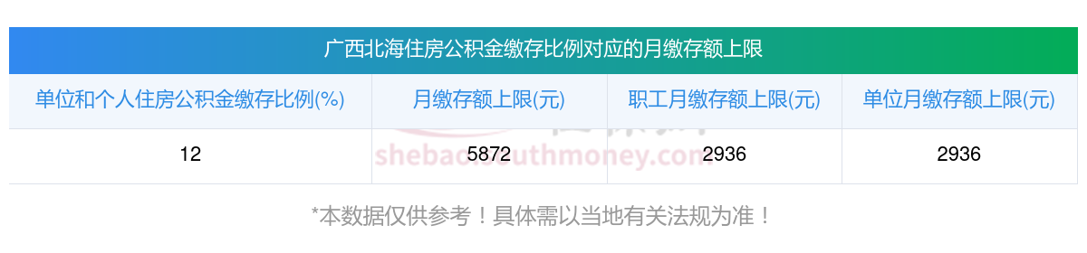 以下举例,可以从广西北海不同比例计算得知公积金每月缴存额度的。