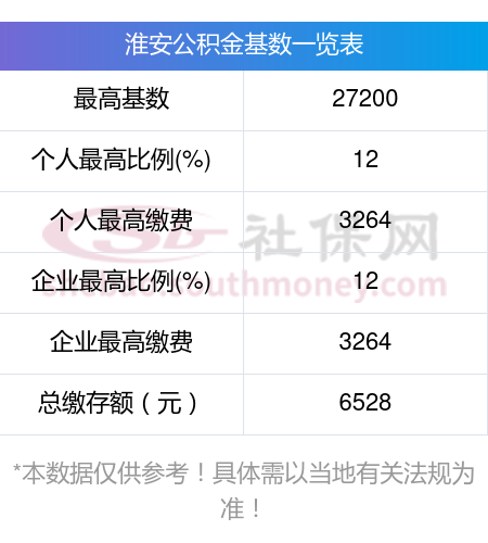 淮安公积金缴存额度计算
