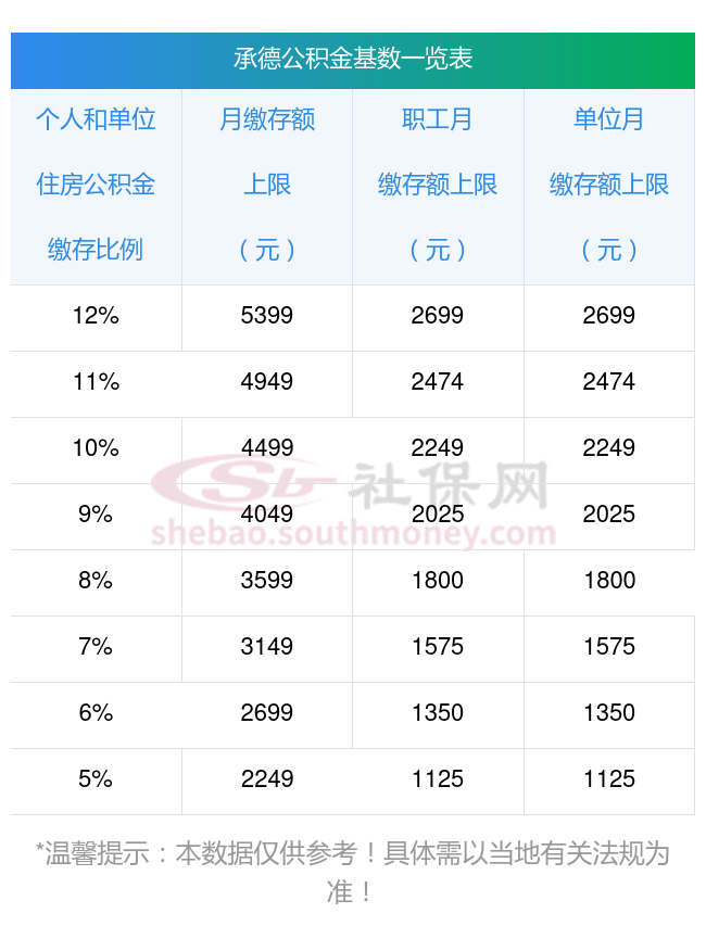 以下举例,可以从承德不同比例计算得知公积金每月缴存额度的。