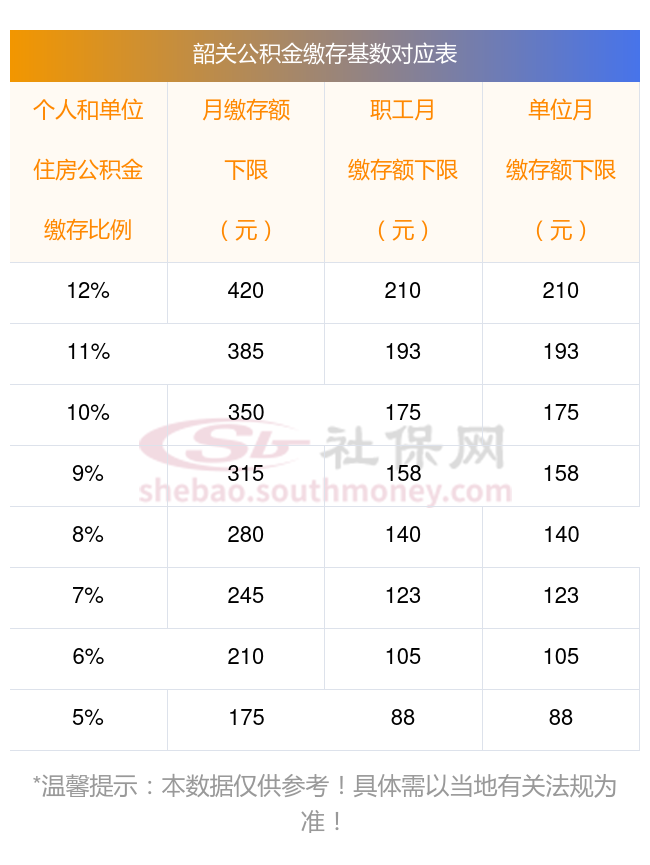 公积金缴存是由职工个人公积金缴存和职工所在单位为职工公积金缴存的公积金两部分构成,属于职工个人所有。住房公积金每月缴费基数怎么算的。韶关调整后最低基数是多少?