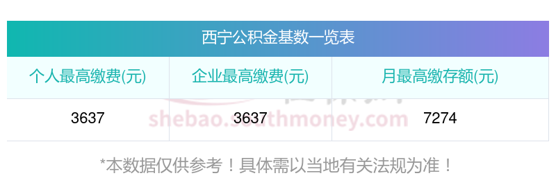 西宁月缴存额下限标准: