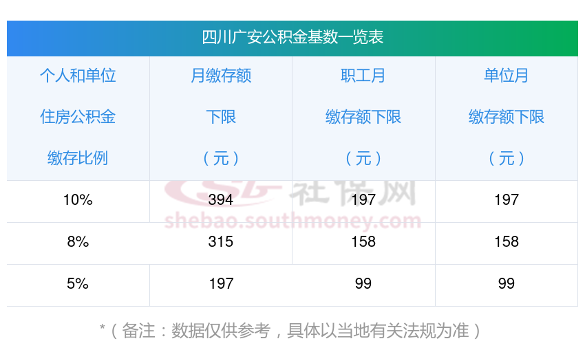 每年住房公积金的调整,现在部分城市住房公积金调整了住房缴存基数、缴存比例,并相应的对最高最低缴存标准作了调整,那来看看2024年-2025年四川广安的最新公积金缴存基数是多少?