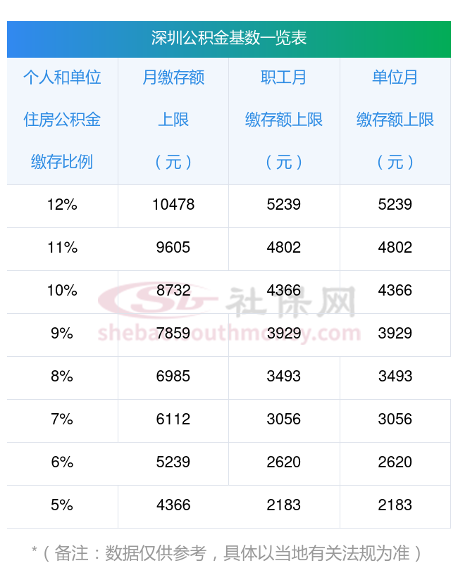 以下举例,可以从深圳不同比例计算得知公积金每月缴存额度的。