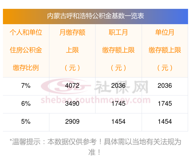 如何计算自己缴纳的住房公积金多少钱?住房公积金计算方法是什么呢?按照什么基数标准计算的?2025年内蒙古呼和浩特最新公积金的缴存基数是多少?下面随社保网小编一起来了解一下。