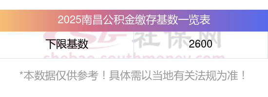根据南昌省有关部门关于调整我省最低工资标准的法定,本年度调整后的缴存基数不得低于2600元。